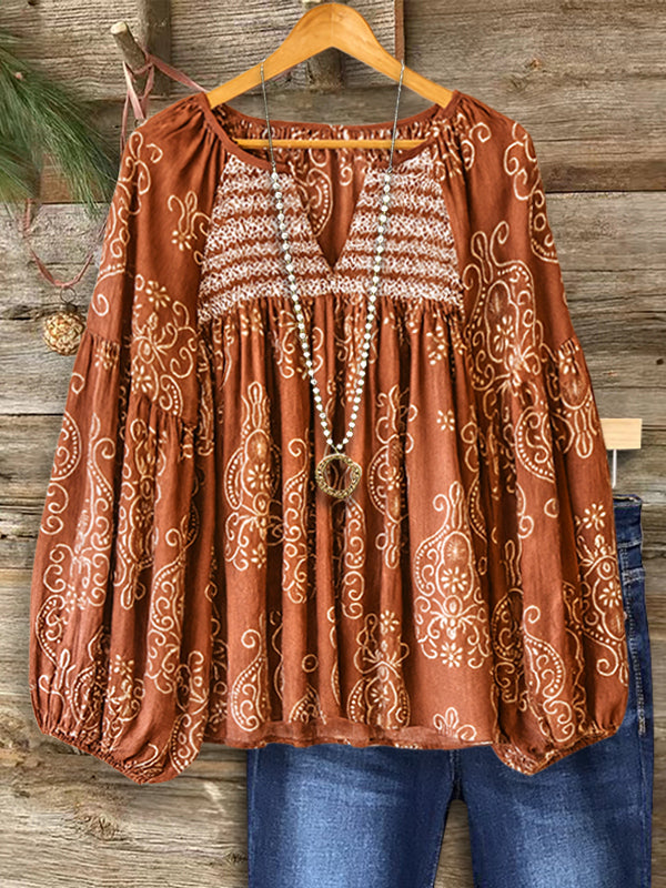 Leaf Print Casual Blouse